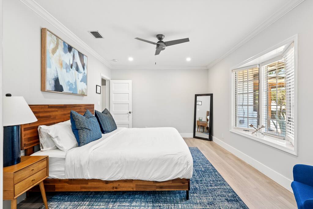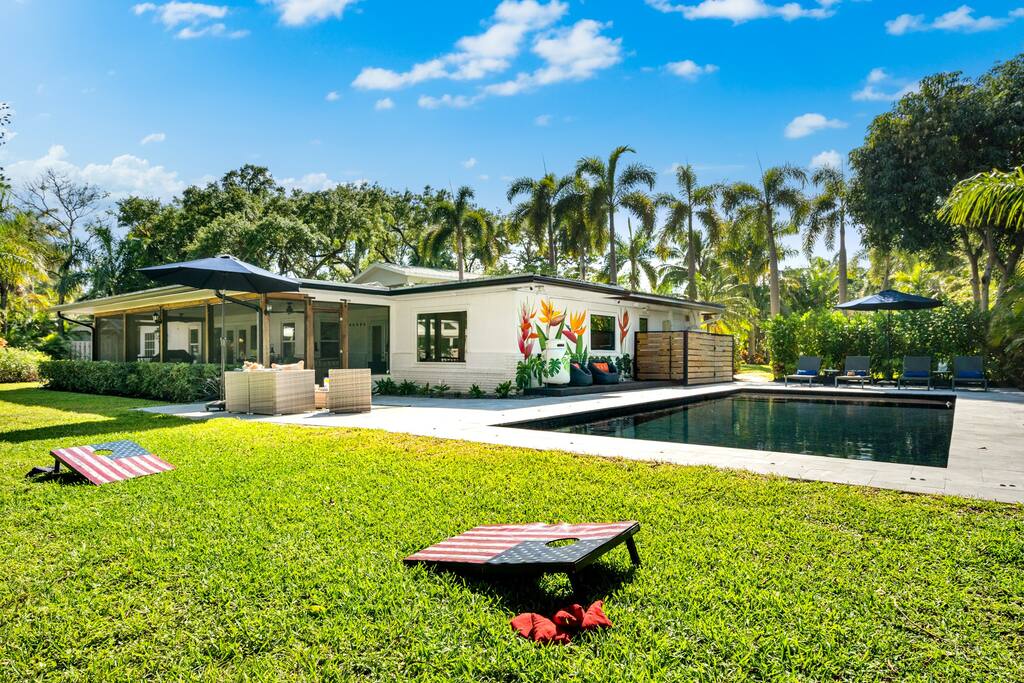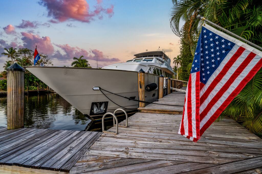 The Oeste Inn, is a gated compound where you will experience a serene space to enjoy your time away from home. With expansive grounds and a significant amount of waterfront this is a boater’s dream to watch all of the mega yachts, sailboats, and power boats pass by. A brand new heated pool and outdoor space will give you time to hang out with friends and family while you unwind. Contact us for seasonal discounts! THE OESTE INN HIGHLIGHTS & AMMENITIES: • Gated property for privacy & security • 200ft of waterfront • Heated Saltwater Pool • Outdoor chaise lounges & Seating area • Fire pit w/Adirondack chairs • Outdoor & Indoor games (corn hole, jenga, football) • Screened Patio Room • Propane Weber Gas Grill & additional 6 person teak dining table • 2 Bikes w/ Helmets • High-speed Wi-Fi & Streaming • In-Home Washer + Dryer (Detergent & Dryer Sheets Provided) • Hairdryers, Shampoo/Conditioner, Hand soap in bathrooms • Beach Gear (Chairs, Coolers, Umbrellas, Beach Wagon, Toys +) • Smart TVs in 3 Bedrooms & Living Room • Kid-Friendly Amenities (Crib, High chair, plate wear, Pack & Play) • Large back yard for events (or just hanging out) • Plenty of parking for vehicles (8-10) & even boat trailer • Local Park: Pickle ball, Tennis, Basketball Courts and Kids Playground less than 3 minute walk. PET FRIENDLY: We allow dogs of a non-dangerous breed. We provide bed, bowls, toys, and a fantastic backyard! There is an additional pet fee and rules. THE ROOMS: - Master: 1 King Bed (Sleeps 2) + Ensuite bathroom + TV - Second Bedroom: 2 Queen Bed (Sleeps 4) + Ensuite bathroom + TV - Third Bedroom: 1 Queen Bed (Sleeps 2) + Ensuite bathroom + TV - Fourth Bedroom: 2 Twin Beds (Sleeps 2) - Bonus: Queen size air mattress (Sleeps 2) OUTDOOR SPACE: Enjoy all the beautiful outdoor spaces The Oeste Inn has to offer! The dark bottom pool includes a sun platform and bench so you can enjoy your favorite beverage and watch the boats go by. The pool, has a heater so should want it heated, please let us know in advance (24hrs prior) and we can set to a max temperature of 82. Our backyard is enormous, throw the football, bird and iguana watch, and lounge under our 100yr old banyan trees. There is plenty of space to soak in the views, from the couch or corner nook on the screened in porch, Adirondack chairs around the riverside fire pit, and even the possibility to catch large fish off the dock! LOCATION HIGHLIGHTS: • FLL Airport (10min) & MIA Airport (45min) • Las Olas/Downtown (5min) • FLL Beach (10min) • Hard Rock Casino (15min) DOCKS: - Boat docks are rented separately. - If you want to bring your boat, please let us know and we can check availability and there is a per foot up charge. - If there are yachts on the dock, you may see them being maintained, cleaned, or staff entering during your stay but they do not live aboard. - There is a private entrance for crew & staff on south side of property. MEET YOUR HOSTS: We’ve thoughtfully designed this home to ensure a relaxing and memorable experience. We are family owned & self-operated. • We live in the mother-in-law suite on the property (above the garage) • We give guests upmost privacy while hosting • Seamless check-in & check-out • Full electronic guide & locks for ease of house entry and use BOOK NOW...we look forward to hosting you!